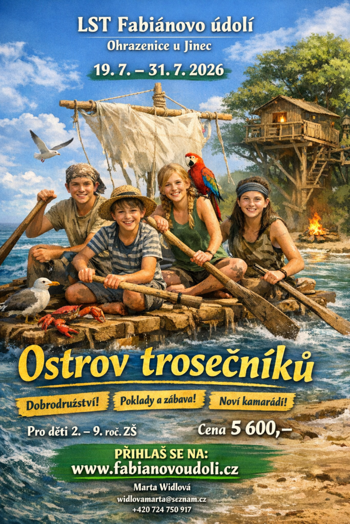 Dobrodružný letní tábor v přírodě s lanovými prvky, hrami a programem pro děti.